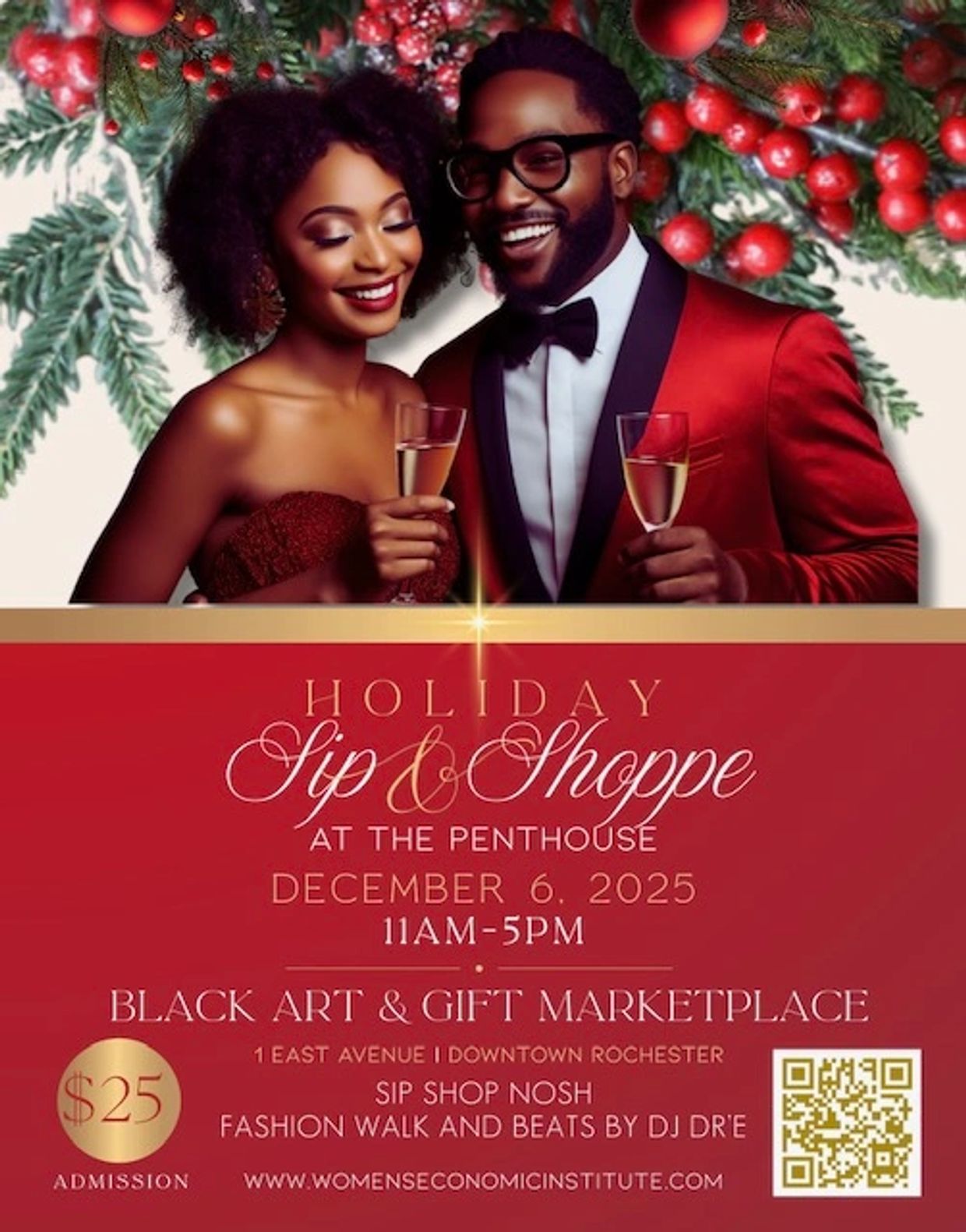 Join the Women's Economic Institute and our friends at the Maisha Beard Experience for a Holiday Sip and Shoppe unlike any other. This beautifully curated Black Art and Gift Marketplace at The Penthouse is designed just for you. Be pampered and empowered while you sip, shoppe, and nosh w/ a purpose.